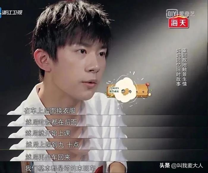 多年后,易烊千玺回忆那段时光,他说每天的吃饭、换衣服、写作业都是在车上。