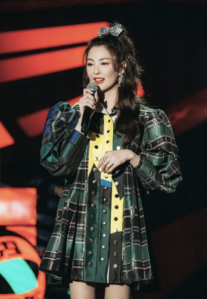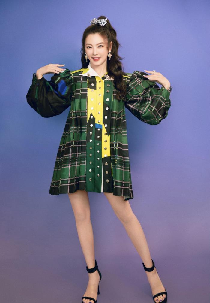 站在台上的张雨绮,给人十分强的气场,身穿一件绿色格子连衣裙的她,显得精致又时尚,裙子垫肩和泡泡袖的设计,显得十分的高级,绿色是比较难以驾驭的颜色,但是肤白貌美的张雨绮却将它驾驭得也太好了吧。