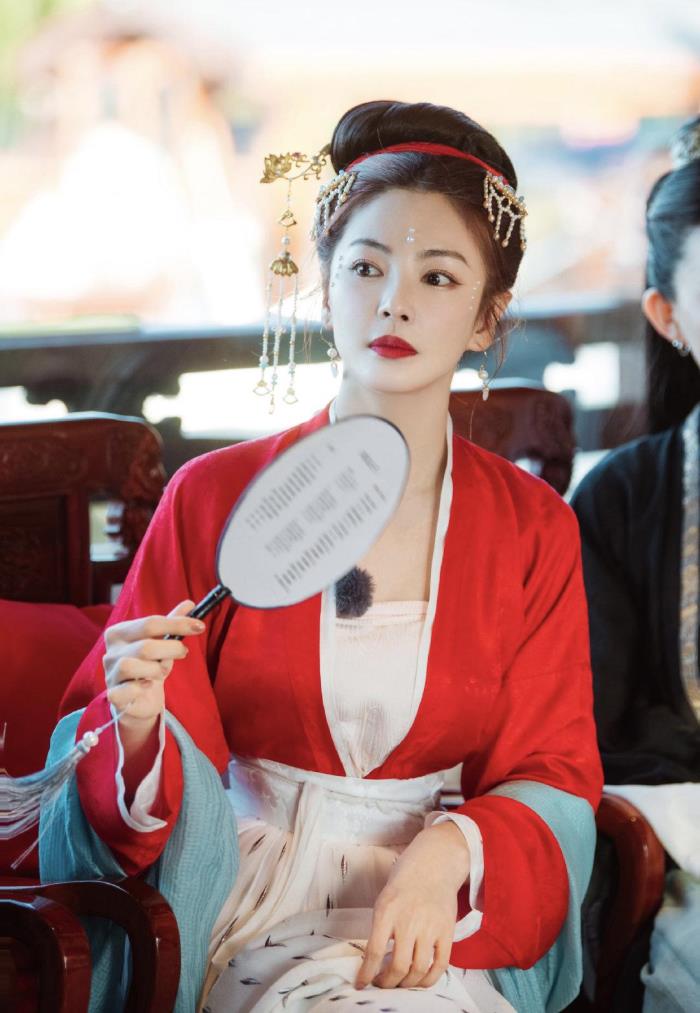 张雨绮的这一身造型,上半身搭配一件红色的外套,下半身是白色高腰半身裙,内搭也是白色的打底,还挽着一条蓝色的飘带,张雨绮整个人显得十分精致,妥妥的古装气质美女没错,你有没有被她迷到呢?