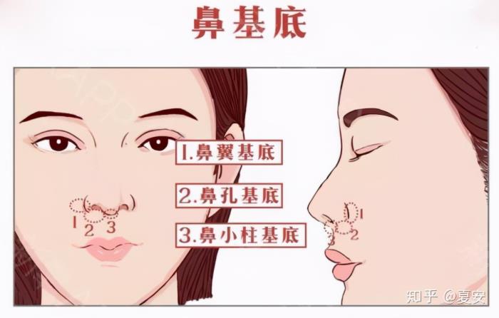 鼻基底,除了鼻翼基底,还包括鼻小柱基底。鼻小柱基底凹陷和鼻小柱过短,也不是一个概念。鼻小柱就是我们两个鼻孔中间的这根柱子,塌鼻子就是属于鼻小柱过短,可以通过鼻小柱延长的整形手术来改善。