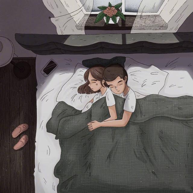 每晚我先睡着,他躺下时一定会小心把我头枕到他手上,把我整个人搂到怀里,碰碰我确认我手脚没受凉,才安心能睡。哪种时候我大多迷迷糊糊,但那份爱觉得不能更安全舒心了。