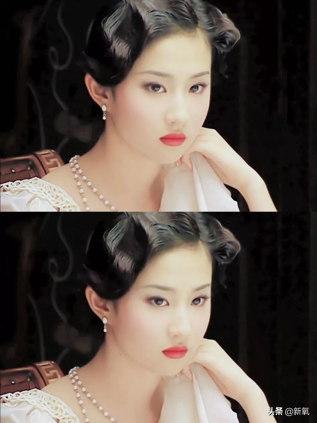刘海也是不必的,对于张雪迎来说她最要紧是增加睿智感,所以脑门得露出来。发带是聪明的,点睛之笔,矜娇的象征。