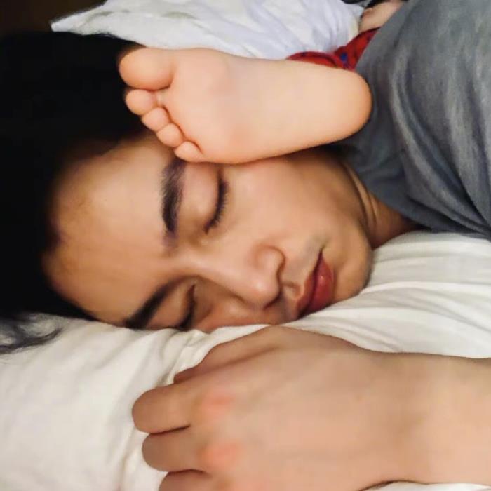 同时她还晒出老公躺在床上熟睡的照片,陈晓紧闭双眼时还有些微微皱眉,可这并不影响他的帅气。儿子的小脚丫肆意地放在爸爸脸上,格外抢镜,虽然陈妍希没有出镜,但是这样的画面也足够温馨有爱了。