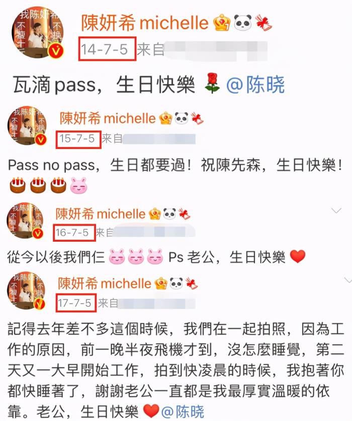 其实不难发现,陈妍希自从认识陈晓之后,从拍戏到结婚生子,今年已经是第八年为男方庆生了。