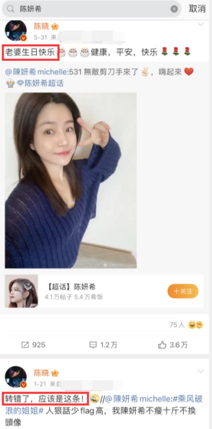 然而近年来,两人互动频率越来越少,外界甚至屡次传闻他们已经婚变。2021上半年,陈晓社交平台动态和老婆有关的,仅有两条。