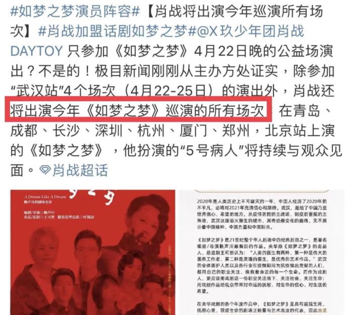 去年的风波对肖战造成的影响不言而喻,复工后为了改善形象,肖战接了很多正能量的工作,对事业的提升不是很大,但有利于塑造他的正面形象,最近他还官宣接演了话剧《如梦之梦》里的5号病人这个角色,但还是有很多嘲讽的声音,不过话剧确实是一个很锻炼演员演技的舞台,对他而言也算是一件好事。
