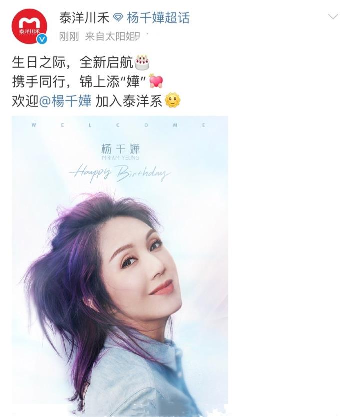 其实杨千嬅在今年就将自己的事业重心转移到了内地,并加入了泰洋川禾这家公司,也难怪资源大增。