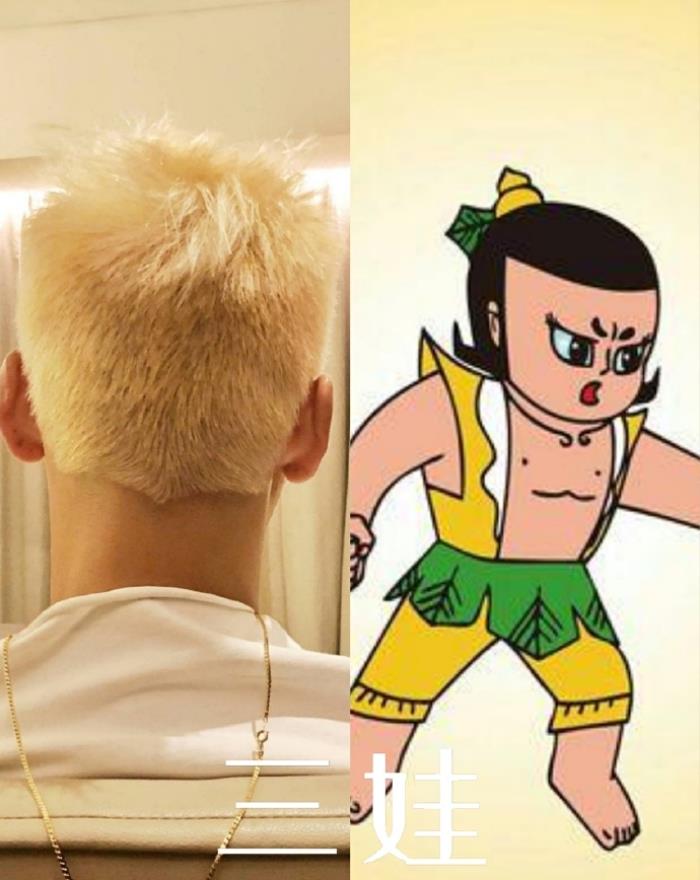有网友就非常有心机地集齐他以往染过的颜色,认为他与动画《葫芦兄弟》里的葫芦娃非常相像。