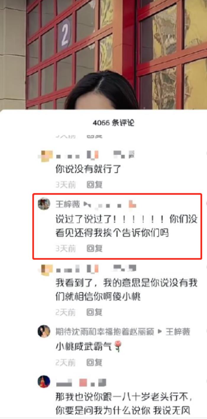 还有网友评论,听说小桃跟二叔了,王梓薇怒怼:“网络就是有你这样的人才晦气”