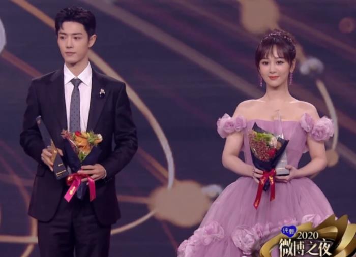 2月28日,微博之夜,杨紫身着粉紫色蓬蓬长款礼服出席,而肖战则是身着黑色西装非常帅气迷人。