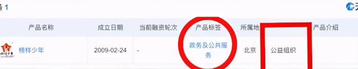 经过多方调查,这个飞旋少年隶属于旭日红阳国际文化艺术传播有限公司。飞旋少年后期改名为榜样少年,在产品公司产品一栏中我们可以清晰地看到,产品标签是政务及公共服务,产品介绍是公益组织。