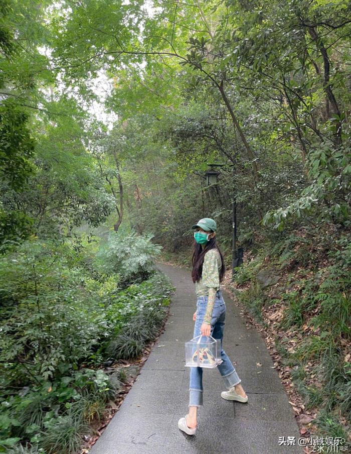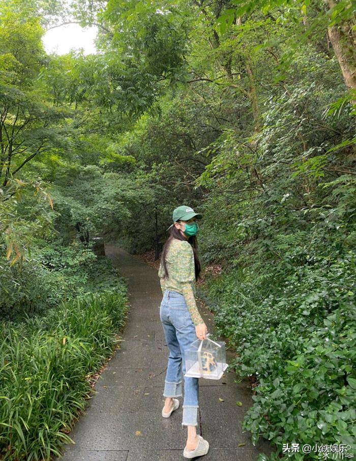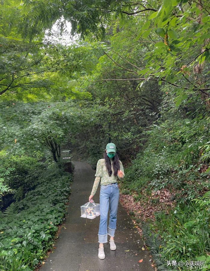 迪丽热巴碎花上衣,简约牛仔,加上清新绿色的丛林风光,迪丽热巴犹如降临人间的小精灵,是那么的俏皮可爱!