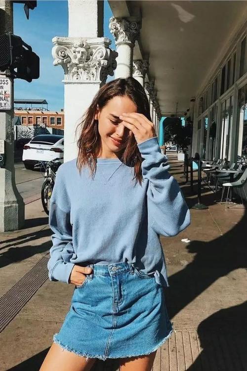 比如灰色T恤搭配蓝色牛仔裤。这样搭配起来能够让自己的少女感满满,非常的充满元气,富有活力,看到就会让人感觉非常的舒服。