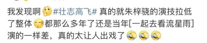 时光飞逝,朱梓骁也不再是当年那个稚嫩的演员,出道12年,他也演了不少电影电视剧作品,可惜口碑均不佳,而这次在电视剧《壮志高飞》中,表现更是槽点不断。