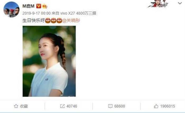 2018年,鹿晗零点零三分晒出一张关晓彤的照片,并且@她,祝她生日快乐。