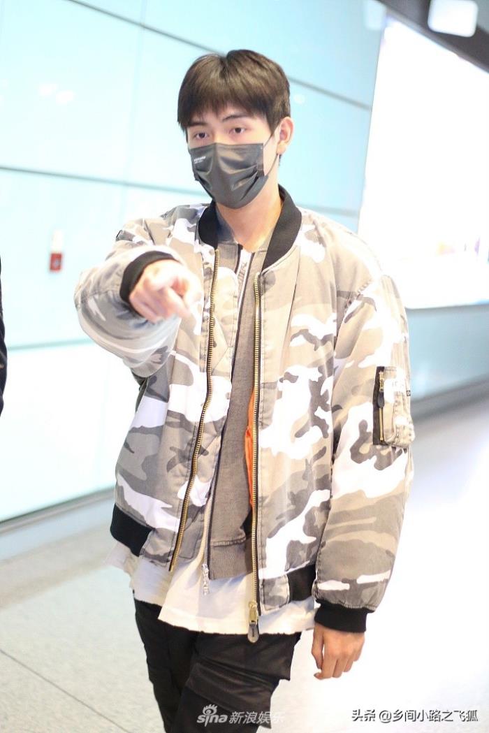 2021年2月23日,北京,陈飞宇现身机场。他顺毛发型戴口罩难掩帅气,穿迷彩棒球服阔步走超霸气。