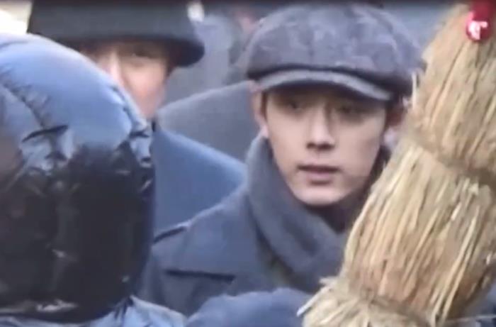 肖战还是很有敬业精神的,虽然穿着单薄,但在拍戏时却面色自若,按剧本走位对戏。他在人群里穿梭,眼神警惕,看情况拍的应该是交换情报的剧情。