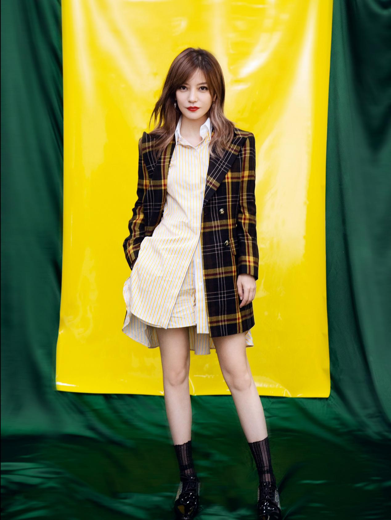经常在职场的女性可以这样穿,选一些带有格子元素的大衣,这样会比较有特点,搭配上一款衬衫,或者是衬衫长裙,都会显得人很干练、利落,赵薇的这身穿搭就非常的适合职业女性,一款黑黄格子的大衣,搭配上白领蓝光白格的不规则裙摆半身裙,整个人都很有气场的感觉。