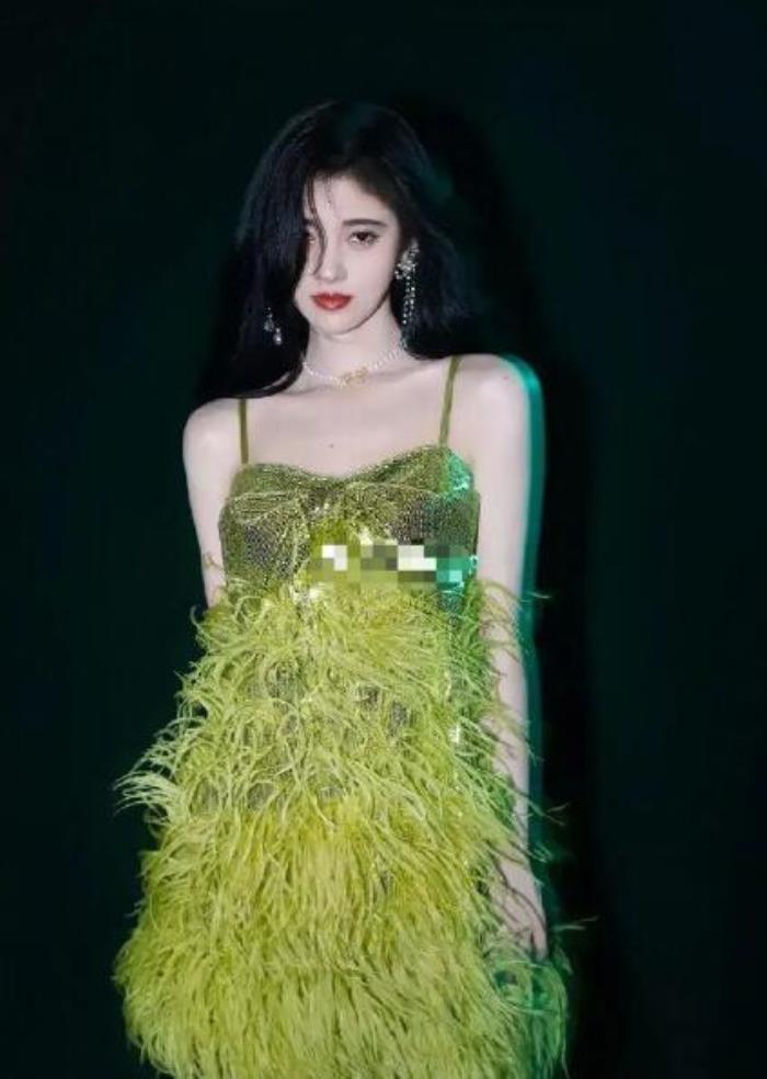 同样一条绿色的吊带裙,穿在同样肤白貌美的任敏身上,就平平无奇。