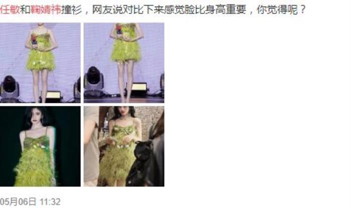 像前段时间,就有人把鞠婧祎和任敏撞衫的图片拿来比较。