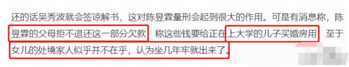 而且在陈昱霖身上,你还会发现一个特别有意思的现象,陈昱霖的父母,曾拒绝退还这1500万(退还后吴秀波方会放弃起诉),理由竟然是准备留给正在读书的儿子买婚房用。