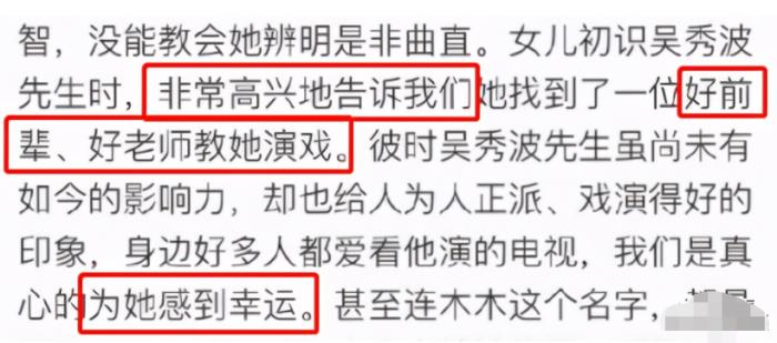 更有意思的是他们声称自己对女儿当吴秀波情人的事毫不知情,只知道吴秀波是女儿的好前辈。