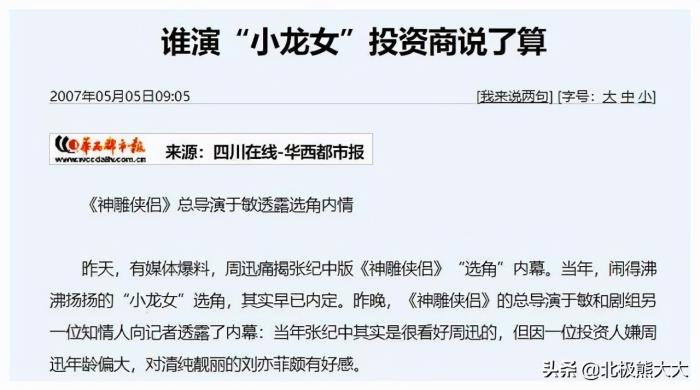 甚至有消息称,她能出演《神雕侠侣》中的小龙女,完全是靠干爹抢来的。