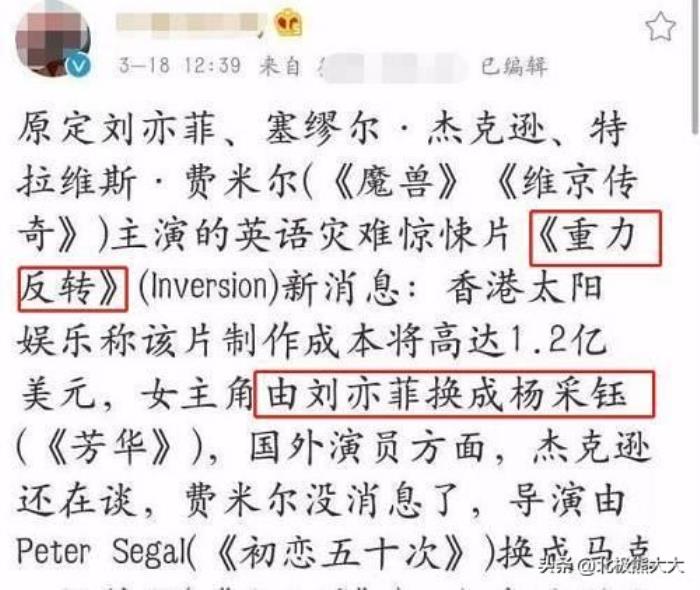 陈金飞有了新欢以后,把资源转移到了新欢杨采钰身上,不再独宠刘亦菲一人。