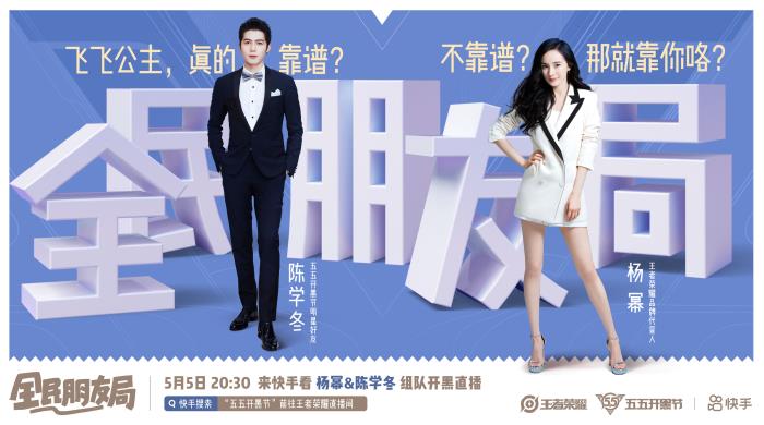 本次五五开黑节,王者荣耀官方是和各大直播平台联手做推广,所以每一位明星都会选择在相应的赞助商平台登场。而杨幂和陈学冬选择的是快手游戏平台,所以快手方面也会派出代表组队欢迎。