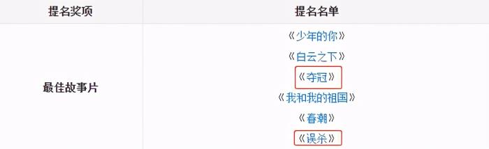 11月25日,第33届中国电影金鸡奖在厦门开幕。同时,电影《少年的你》、《我的我的祖国》、《夺冠》、《误杀》均被“最佳故事片”提名。