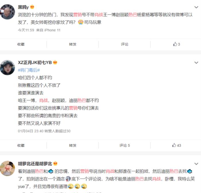 但也有很多人理智的觉得,肖战和迪丽热巴不应该在这个时候合作,cp粉们也不应该这个时候把他们组cp的热度炒高。因为现在肖战和杨紫的《余生》,还有迪丽热巴和杨洋的《荣耀》都还没有开始宣传和播出,如果把肖战和迪丽热巴组到一起,对杨紫和杨洋不太公平。