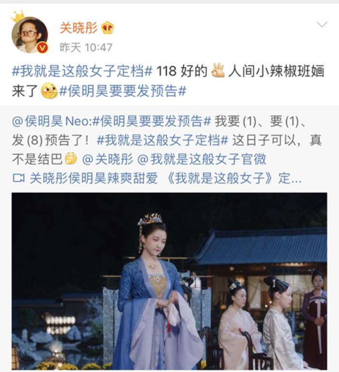 《我就是这般女子》并没有上星,纯靠网络宣传预热。作为主演的关晓彤当然积极营业,转发官微发出的预告片,引发了网友的讨论。