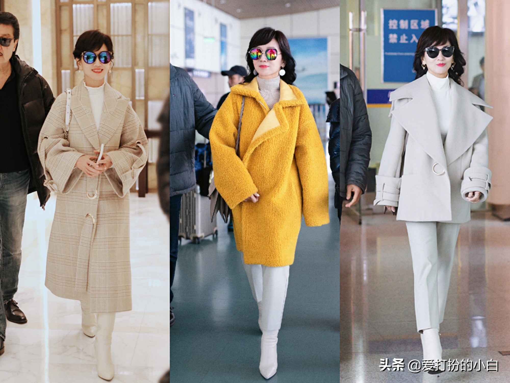 而对于穿搭,我只能说赵雅芝真的是将自己的优势最大化了,她的搭配几乎离不开大衣,不然就是大衣裙,其实大衣确确实实是成熟女性的友好的穿搭,既可以遮肉又可以显气质,冬天的不二选择!