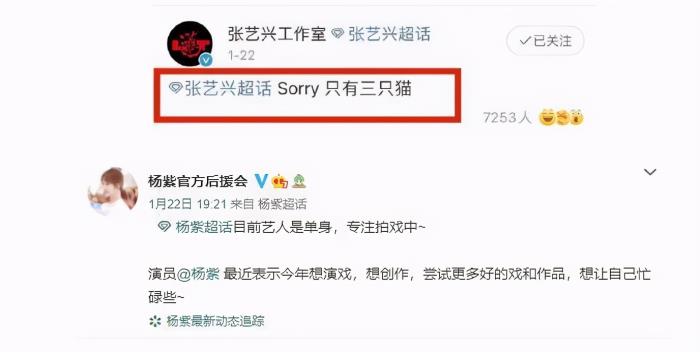 张艺兴工作室辟谣:“Sorry,只有三只猫”否认了恋情的消息。
