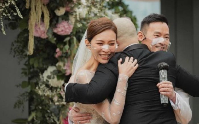因为疫情的关系,朱慧敏和新郎在婚礼全程都戴着透明口罩,只邀请了20位亲友见证幸福。