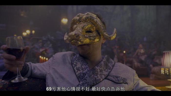 第一、二集时,它确实惊艳,最令人印象深刻的名场面,出现在“123木头人”游戏后半段。戴着兽头面具、喝着高级洋酒、穿着高定西装的上流阶层坐在真皮沙发上,黑胶唱片机放着悠扬的《Fly Me To The Moon》,而上流阶层面前的电视屏幕上,玩游戏的底层人士正在为了不被杀死而挣扎,血色斑驳、残酷无比的游戏场面,与柔和的歌声、悠闲的上流阶层形成鲜明对比,这一段画面,相当具有感官冲击力。