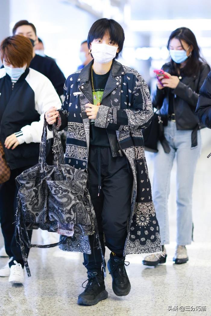 不光是裤装搭配显腿短,整体的衣服搭配也显得太粗犷,缺少了一些精致的美感。宽大的夹克外套,长度都到了小腿肚位置,虽能走路带风,但对显高的效果是一点都没有。宽大的包包虽和整体风格相近,但还是没有皮质的质感,显得有些廉价。所以,周笔畅打造出来的造型,自然没有让身材显高。反而,成功把自己穿矮了。