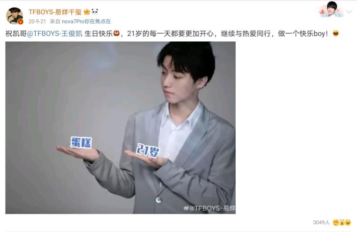 在对待TFboys组合的队友上,虽然以前易烊千玺总是被忽略,但是他也没有因此怨恨、嫉妒,反而这几年以来,每到另外两个队友的新歌发布,演唱会开唱以及生日,易烊千玺都会转发助力。