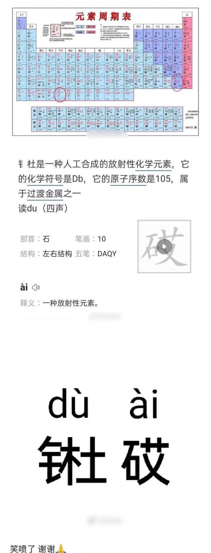 在饭圈,博君一肖CP粉有个“黑称”叫“王八”,他们“磕糖”的方式稀奇古怪。比如,最近有CP粉竟然打了元素周期表的主意:肖战的生日是10月5日,王一博的生日是8月5日,第105号元素是“”,念“杜”的音;第85号元素是“砹”,念“爱”的音。