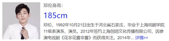 从官方的数据上,我们可以看到,邓伦的官方身高是在185,可以说有是标准的男神的身高,放在娱乐圈中这样的身高比较常见,但是现实生活中,官方身高超过了185的男生,就真的不多啦。所以从数据上来看,邓伦的身高,也是不少的小女生最理想的、最萌身高差的男友身高啦。