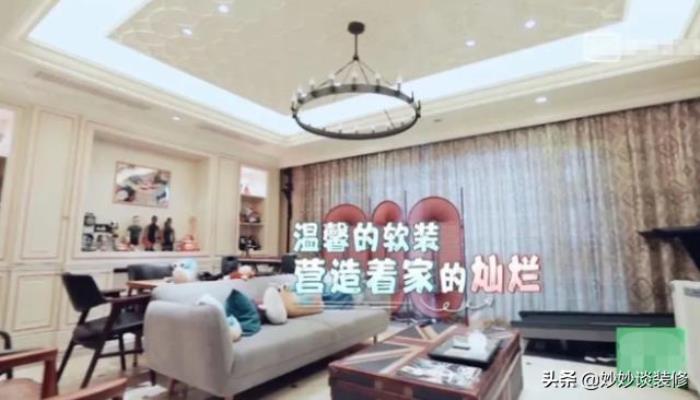 这里可以看到客厅的全部,面积不算大,但是很温馨,每一处都是精心设计及布置的!整体运用了米色来打造全屋色系,显得非常的敞亮。天花悬挂了一盏圆形的吊灯,简约耐看!还设计了白光灯带,客厅的沙发非常的精致简约,对于独居的她来说刚刚好!客厅还打造了一面落地窗,搭配了具有年代感的花纹褐色透光性较强的窗帘,有点突兀的感觉!沙发旁边还特意设计了一面粉色的屏风!可能是因为窗帘遮光度不太够,特意放置了屏风。也有隐秘性的功能!最显眼的是客厅放了一台跑步机!周笔畅也很注意形象,经常锻炼呢!
