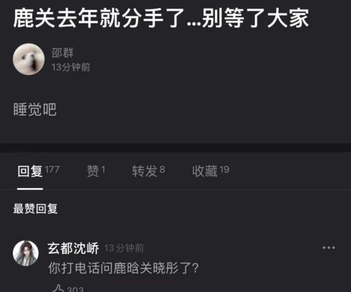 在评论区里,有听说鹿晗求婚的,还有听说男方提分手女方复合无望的。