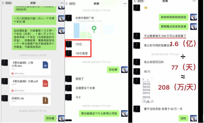 在张恒的曝光视频中,郑爽一开始并不满足1.5亿元的片酬,开口叫价1.8亿元,随之通过谈判才定价为1.6亿元,进组拍摄《倩女幽魂》后改名为《只问今生恋沧溟》的剧一共77天。