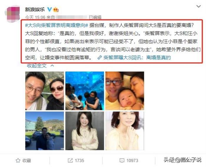 《流星花园》制作人柴智屏询问大S是否真的要离婚?大S回复她称:“是真的,但是我很好,谢谢柴姐关心。
