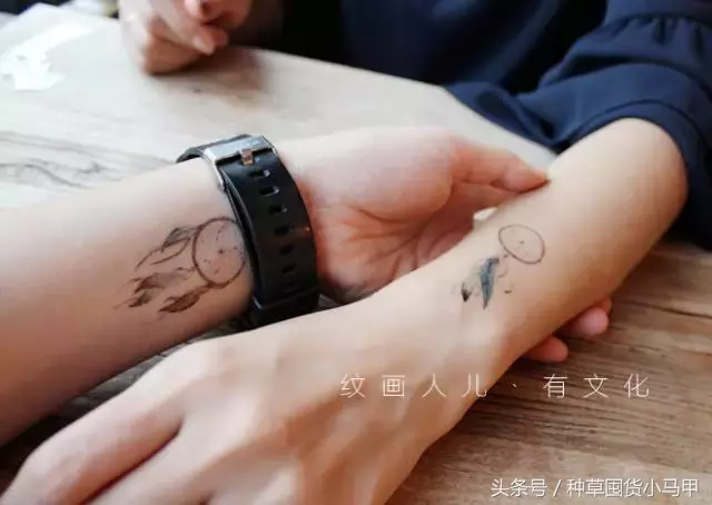 小巧可爱型的纹身贴纸,贴在手腕上小半圈刚刚好。