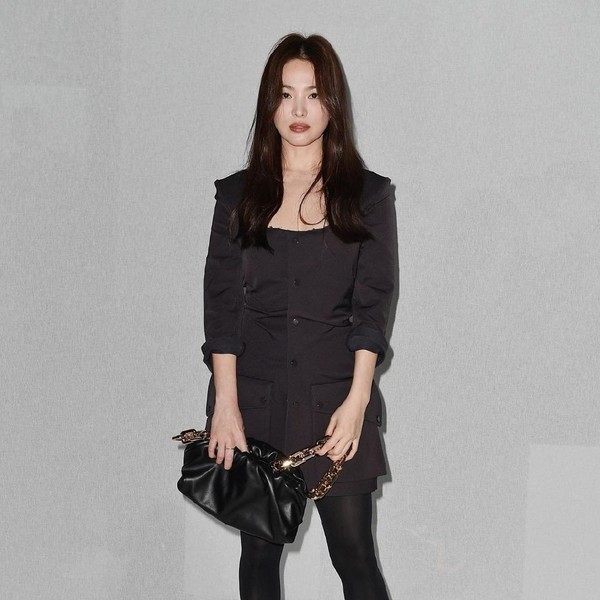 近日,正值2020秋冬米兰大秀之时,乔妹也受邀出席看秀,当天她身穿黑色裙装配黑色金属链云朵包。坐在前排的观众席,十分惹眼瞩目,在这个春暖花开的季节,宋慧乔选择穿一身全黑LOOK真的很有勇气。