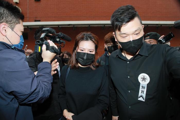 面对镜头掩饰不住悲痛,侯珊燕双眉紧皱泪水在眼眶里打转,不过素颜的五官依然很能打,她当日半扎马尾辫,一头红发在人群中很是抢镜,为了送丈夫最后一程,她把自己打扮得漂漂亮亮,但是来到灵前还是控制不住自己的情绪,伤心的不能自已还需要人搀扶着。
