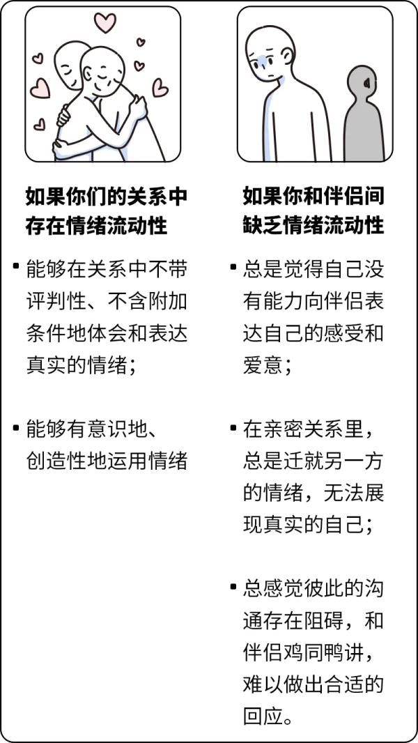 亲密关系中的情绪流动性,指的就是关系中的双方能够运用情感的语言,准确地沟通ta们的感受和内心的状态。