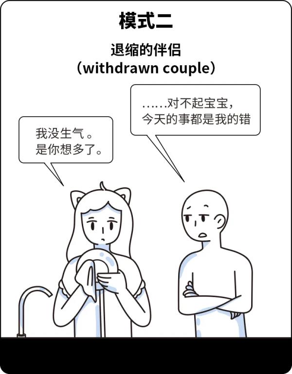 Ta们是互相回避的一对,被称为“没有冲突的伴侣”。在依恋类型理论里,ta们往往都是“回避型”。在表面上,ta们双方对关系都很满意,很少有直接的冲突,但没有真正的情感交流。