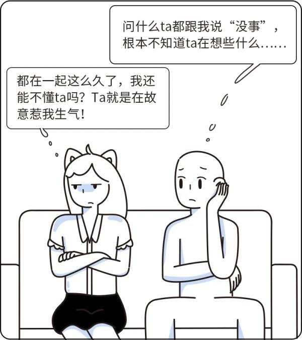 你们对对方的行为、举动、语言的理解,未必是对方真实所要表达的。争吵经常会进入这样的状态:你并不能够识别出自己在生气什么,也不明白对方真的在说什么,你们都是基于自己的语境,在和自己想象中的对方对话。